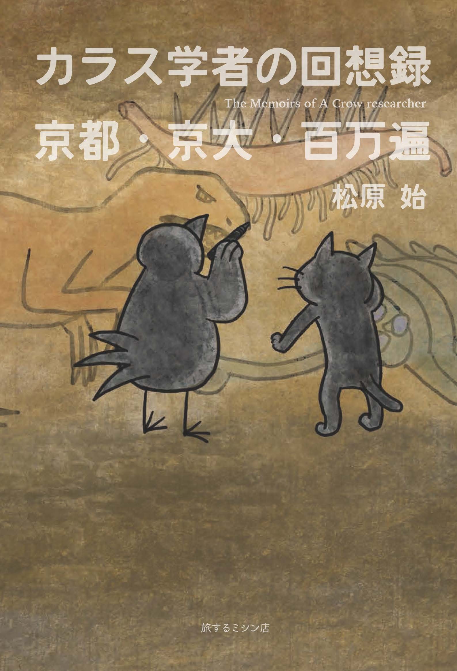 カラス学者松原始先生著+旅するミシン店植木ななせ店長イラストの新刊書籍『カラス学者の回想録』、4月27日(木曜日)20時から先行予約販売を行います(発送開始は5月2日以降)。また、この27日20時から1点もの、お菓子などの売出しも行います。