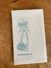 旅するミシン店のマスコット「ミシンさん」のブックカバー。ミシンさんは旅上手。カバンひとつで世界中を旅しています。