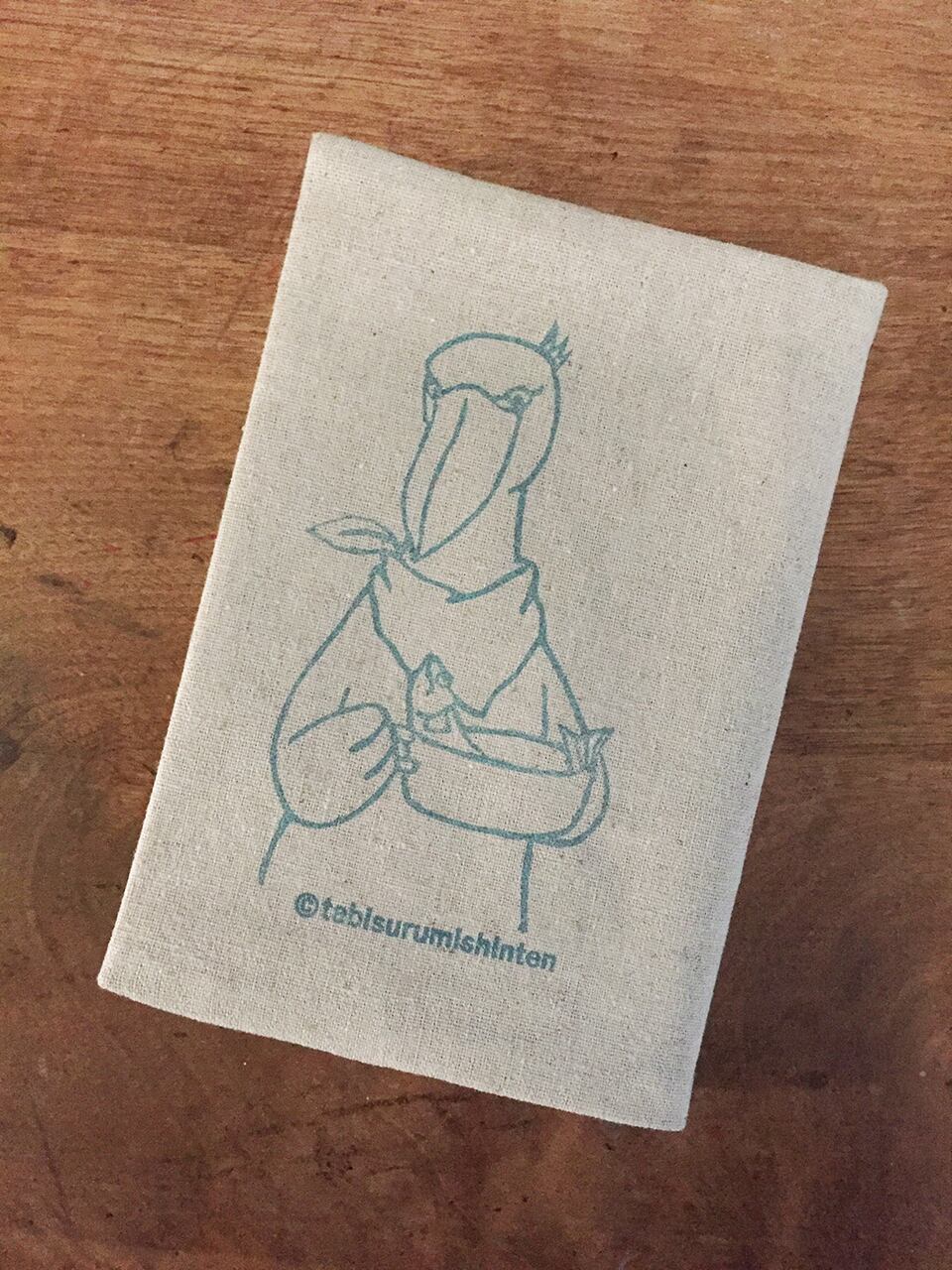 ハシビロコウのカンパラくん柄の文庫ブックカバー。