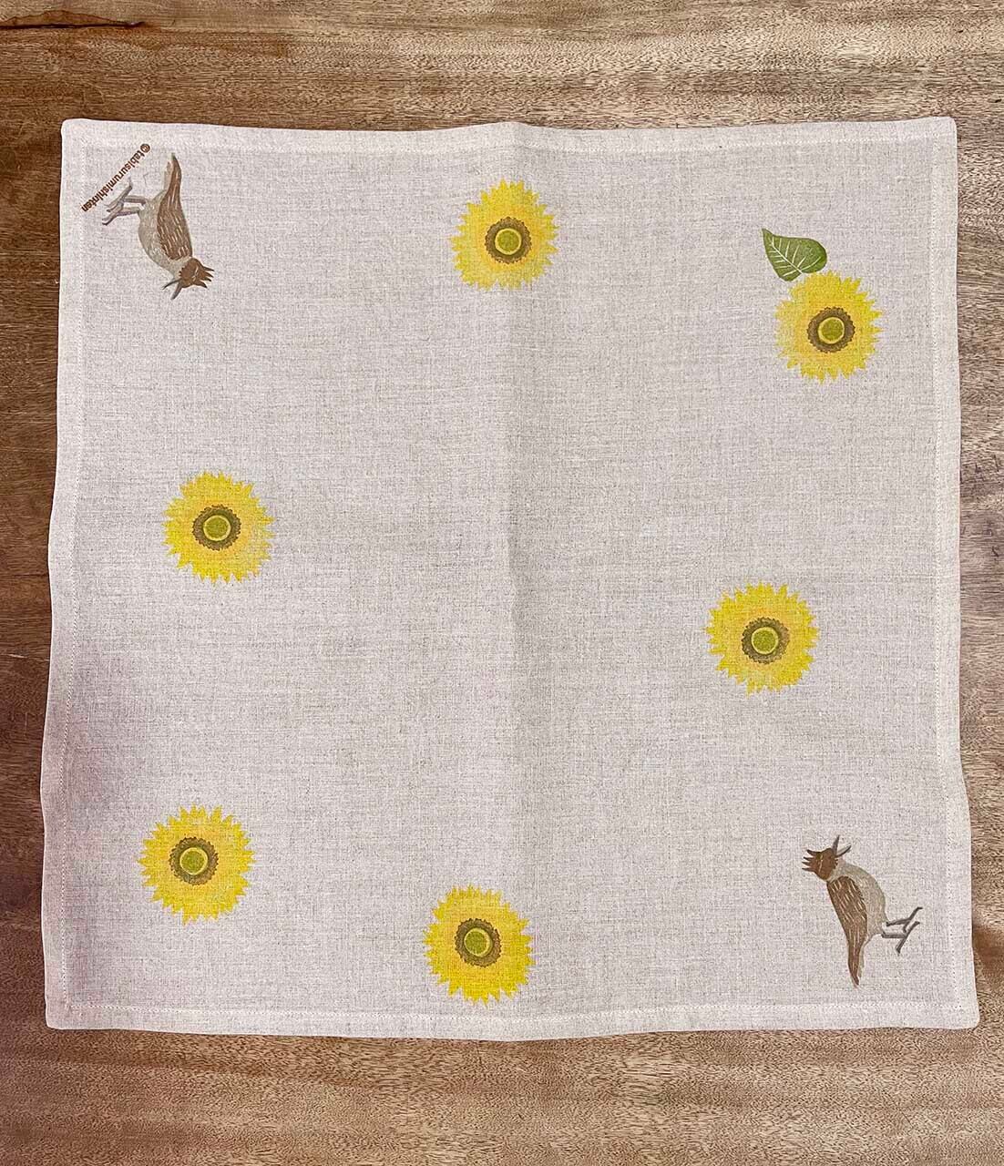 ウクライナ支援寄付:【麻のハンカチ】ヒバリとひまわり